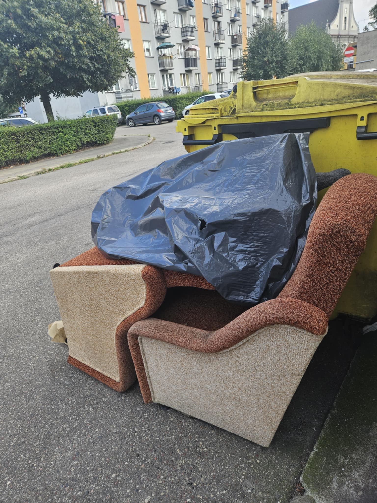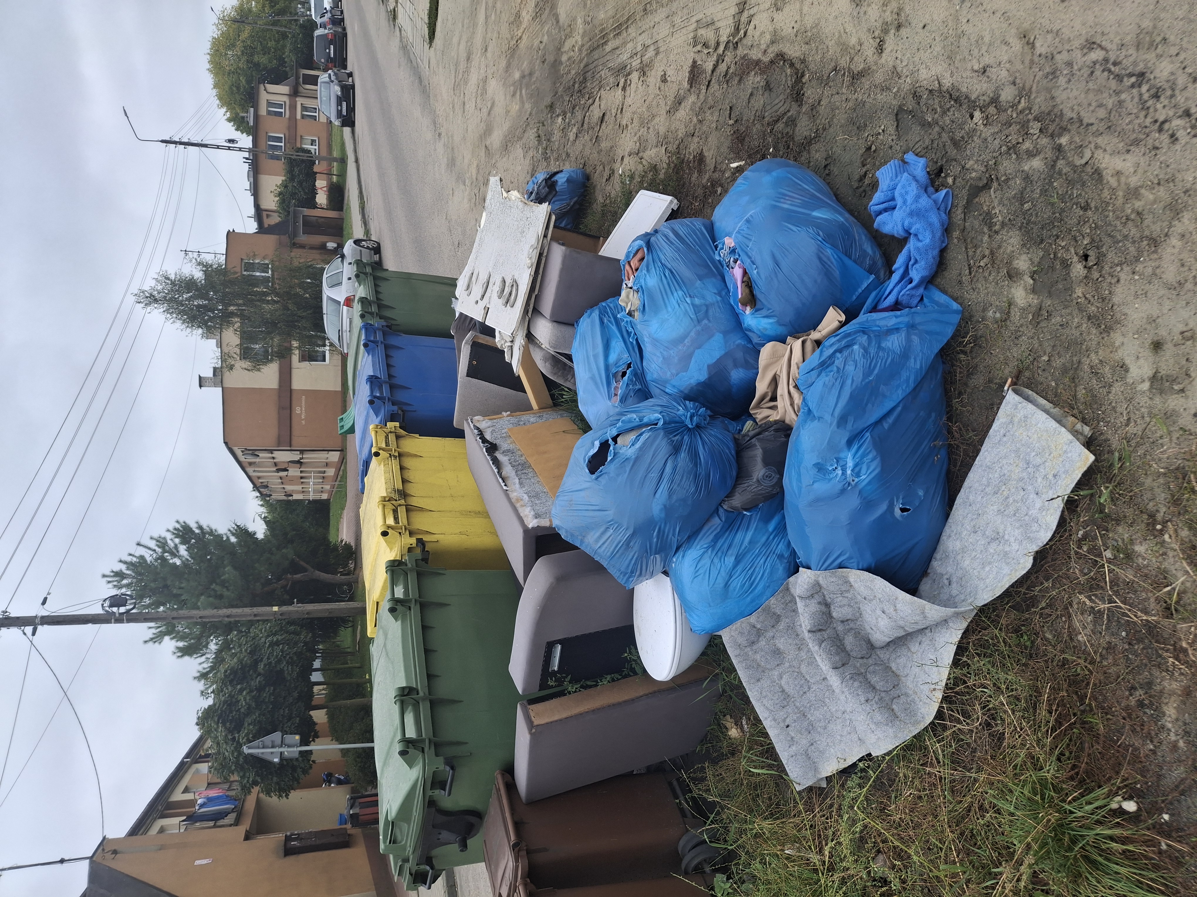 Po raz kolejny spotkaliśmy się z sytuacją, w której odpady wielkogabarytowe zostały porzucone przy wiatach śmietnikowych poza wyznaczonym terminem odbioru.