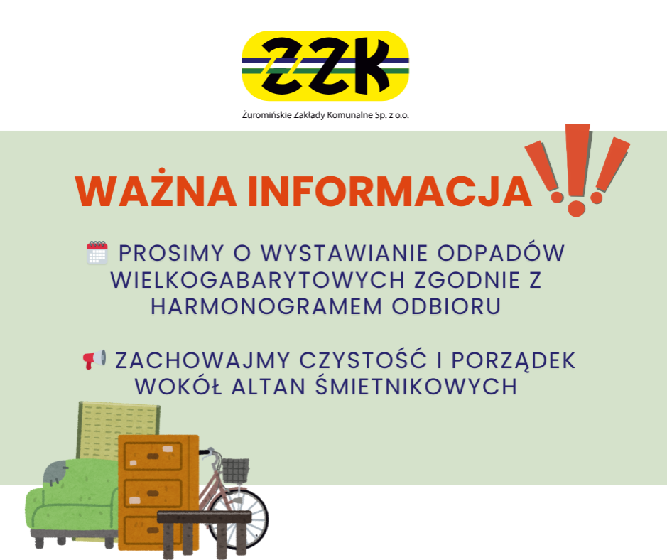 Terminy odbioru odpadów wielkogabarytowych są jasno określone w kalendarzu wywozów – bardzo prosimy o ich przestrzeganie. Wystawianie śmieci "na wszelki wypadek" lub "bo już się nie mieści" nie jest akceptowalne.