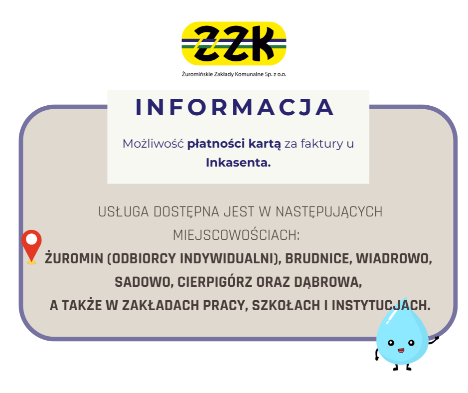 Informujemy, że istnieje możliwość dokonywania płatności kartą u inkasenta za wystawione faktury za wodę